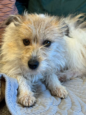 Sadie was rescued from a public shelter, so her history is largely unknown. It is clear that she has not previously lived in a home environment, but she is gradually adjusting to household noises and daily routines. She has started to play with toys and can be quite bouncy at times (there's a fun little dog there just waiting to pop out)